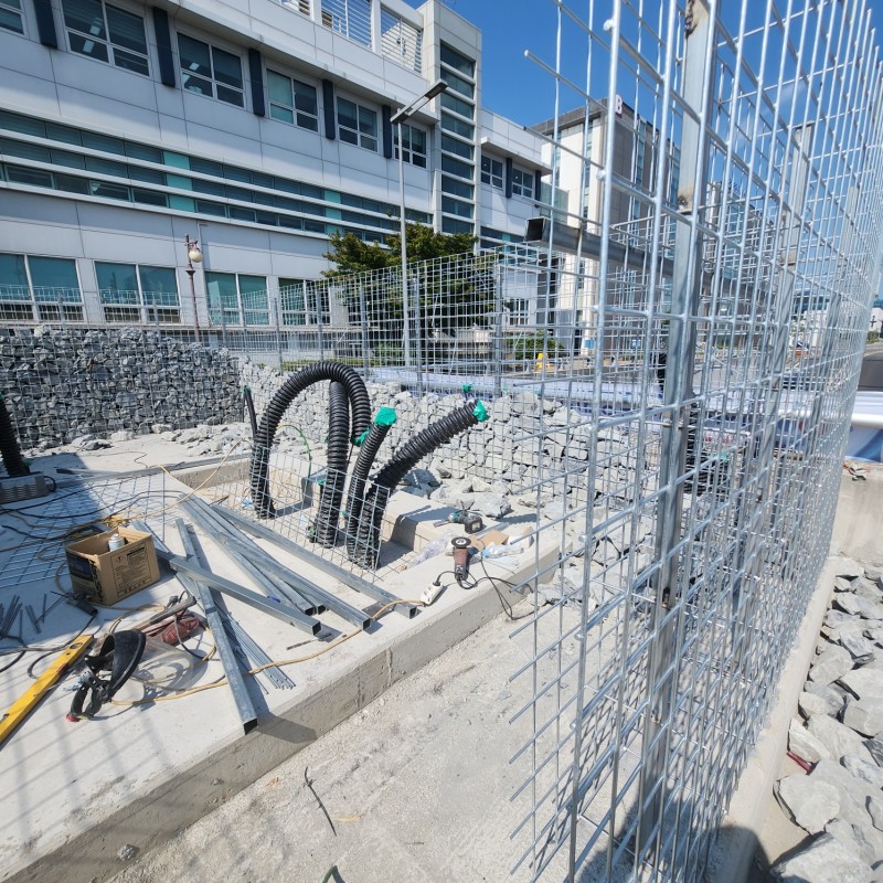 유성 신세계백화점 뒤 개비온담장