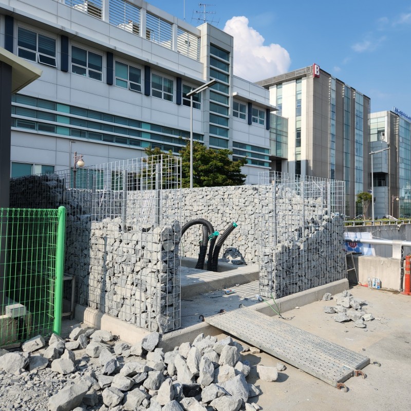 유성 신세계백화점 뒤 개비온담장